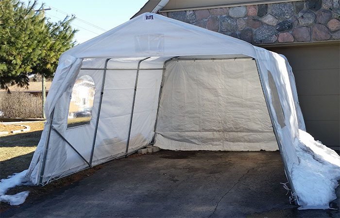 Abri auto de 11 pieds de largeur par 12 pieds de profondeur.
